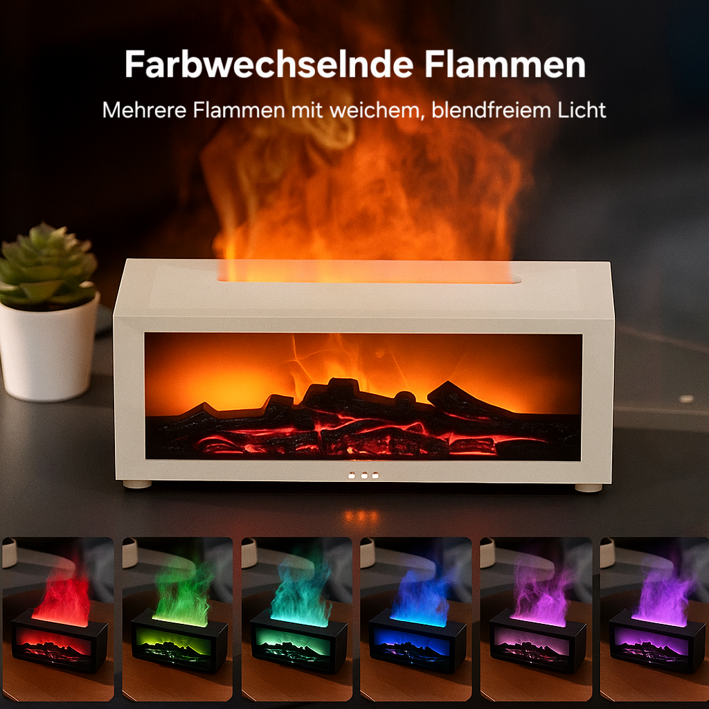 Ja! Gib einfach ein paar Tropfen deines Lieblingsdufts hinzu, um den Raum mit entspannenden Aromen zu füllen – oder nutze nur Wasser für den gemütlichen Flammeneffekt und sanfte Luftbefeuchtung.